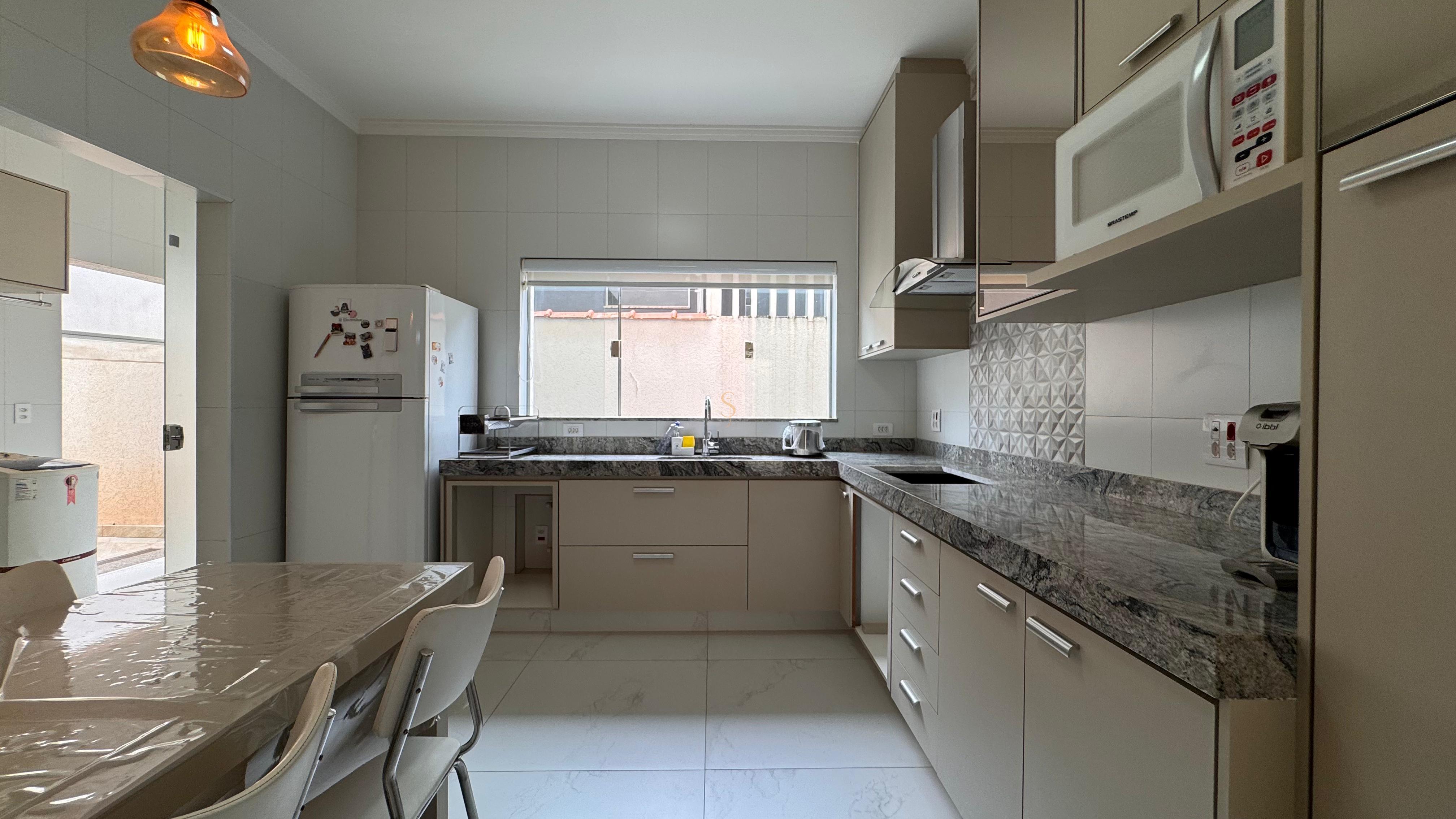 . Cozinha repleta de armários e despensa;