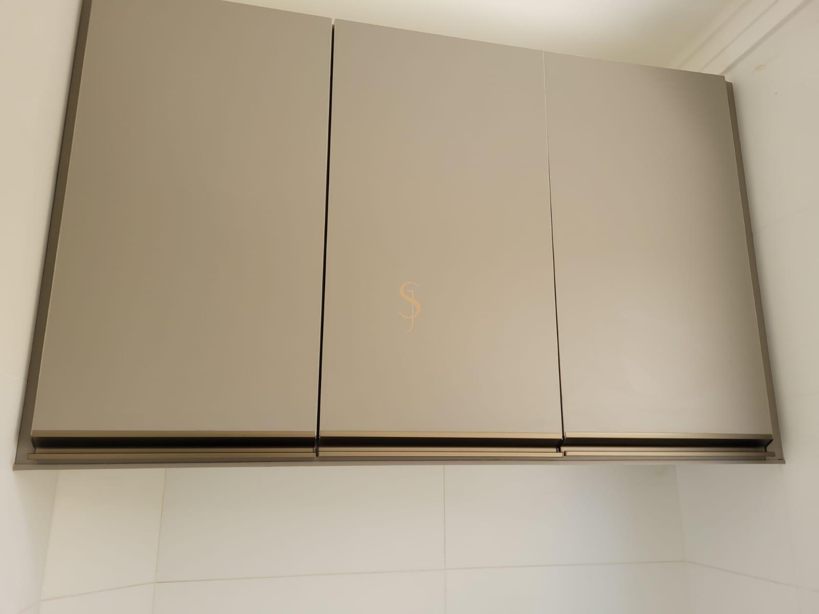 Possui armários na suíte, banheiros, cozinha e lavanderia.