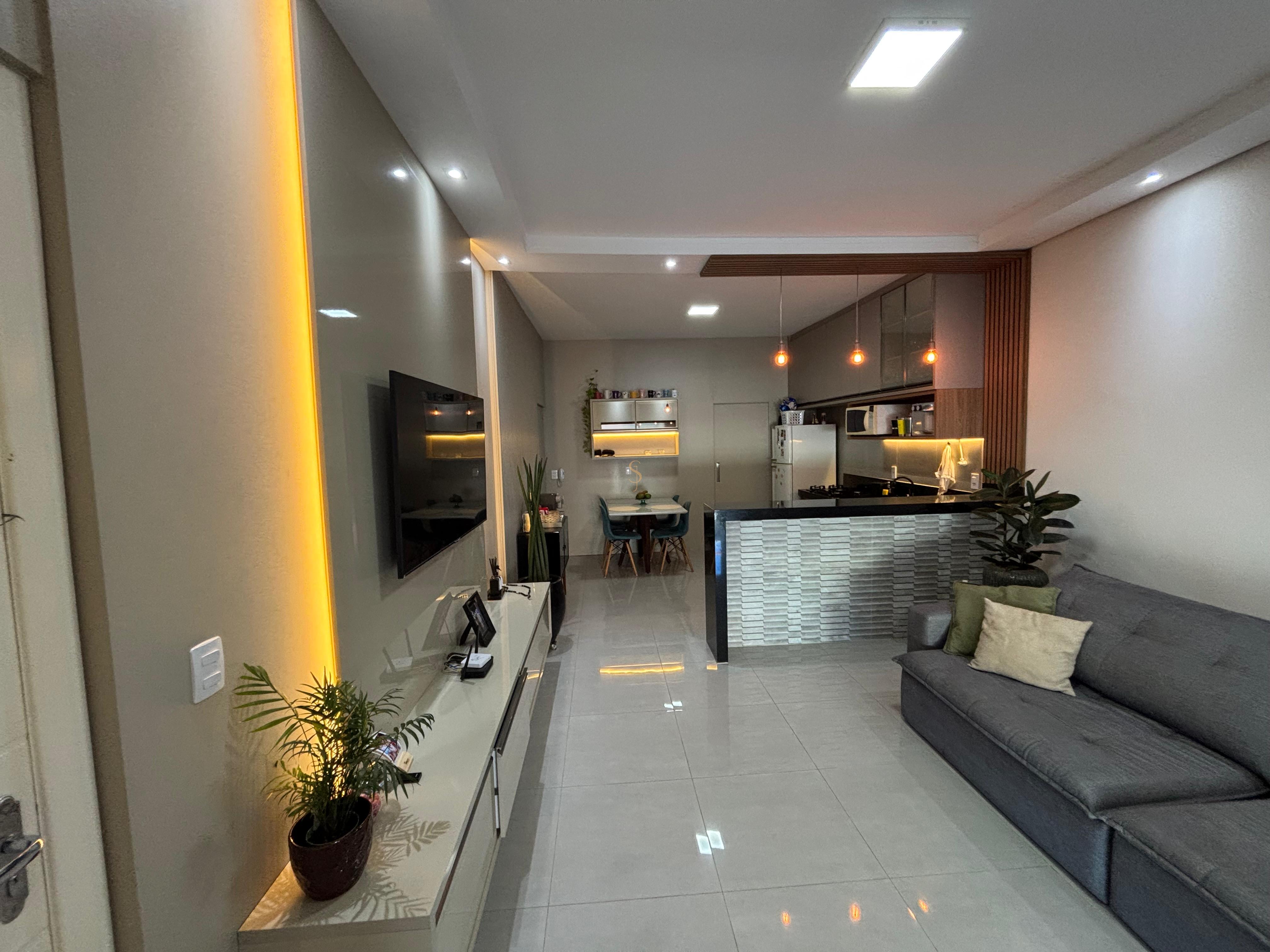 2 suítes amplas, sendo a suíte principal rica em armários planejados, iluminação em LED e banheiro espaçoso