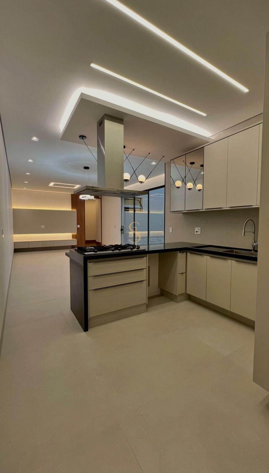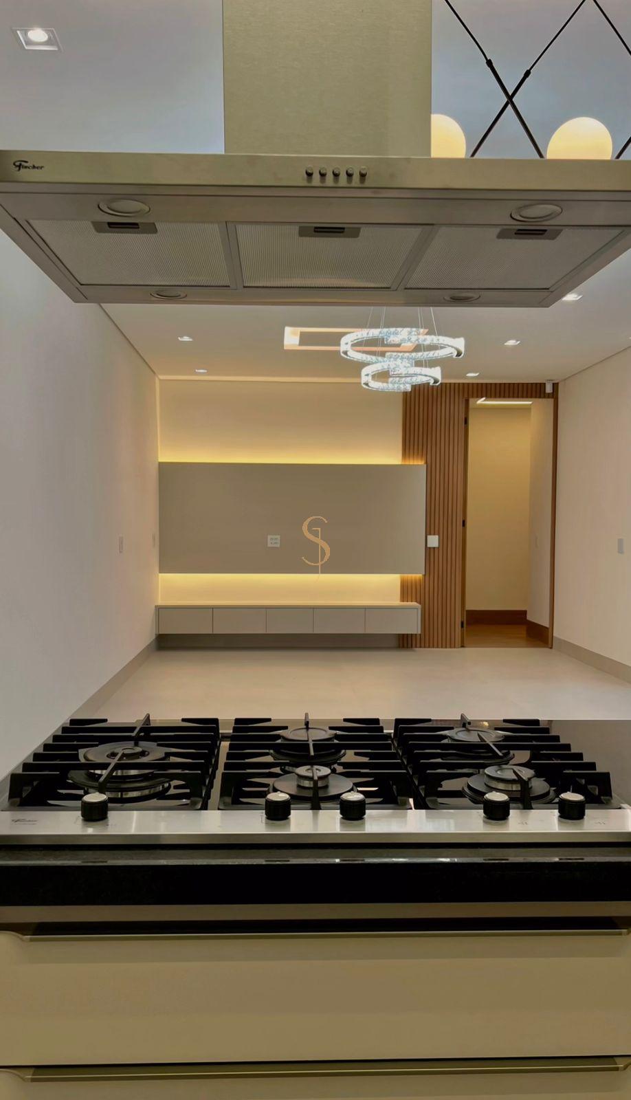 O living em conceito aberto conecta sala, copa e cozinha com elegância, além de contar com escritório privativo ideal para home office, lavabo sofisticado, despensa e lavanderia reservada.